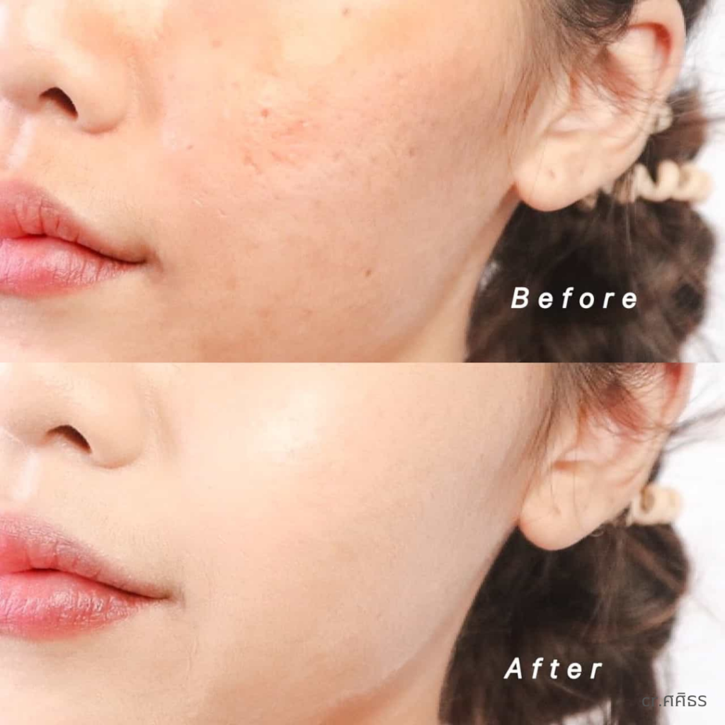 - ปกปิดรอยสิว ริ้วริย: รอยแดงจางลง ผิวดูเรียบเนียนขึ้นแบบชัดเจน