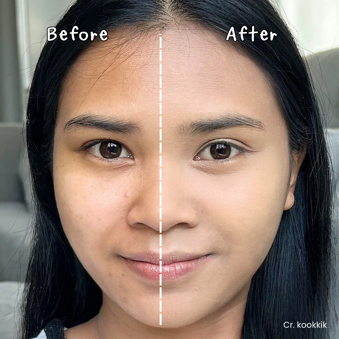 สีผิวสม่ำเสมอขึ้นทันที สิวเม็ดแดงจางลง รอยดำเก่า ๆ แทบมองไม่เห็นแล้ว หน้าไม่ดูหนา ไม่แห้ง