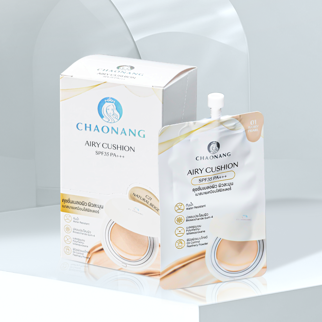 แนะนำ คุ ช ชั่ น ซอง สูตรใหม่ ที่ตอบโจทย์คนเป็นสิว รูขุมขนกว้าง ต้องการงานผิวที่เนียนสวย “Chaonang Airy Cushion SPF35 PA+++” เนื้อสัมผัส ที่เบาสบาย เกลี่ยง่าย ไม่เป็นคราบ ไม่ตกร่อง ผิวดูเนียนกริบเหมือนติดฟิลเตอร์ ใครที่กังวลเรื่องรูขุมขน ตัวนี้ช่วยเบลอผิวให้เนียนละมุนได้ดีแบบไม่ต้องพึ่งแอป