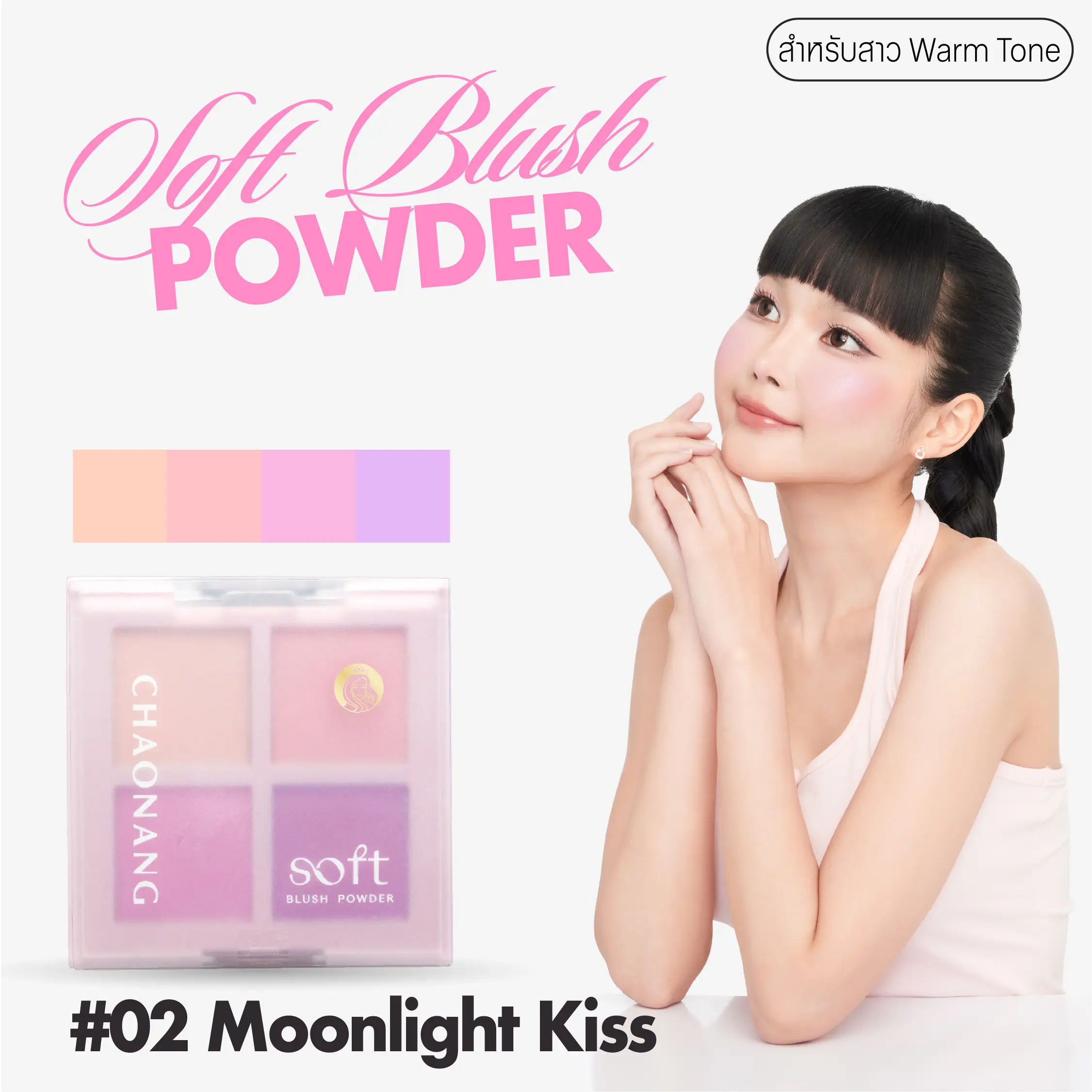 02 Moonlight Kiss : บลัชออนคูลโทน 4 เฉดสี มากับสีโทนชมพูหลายเฉดให้เลือกใช้ ฟินิชแมตต์แบบเป็นธรรมชาติ สร้างลุคอบอุ่น และดูสดใสอ่อนเยาว์ มากับสูตรแป้งเนื้อละเอียดและบางเบา ไม่เป็นคราบหรือฟุ้งกระจาย ให้สีชัด สวยในปัดเดียว
