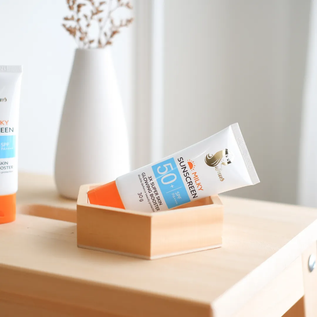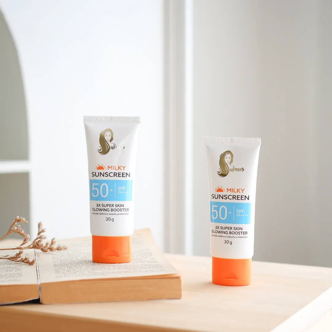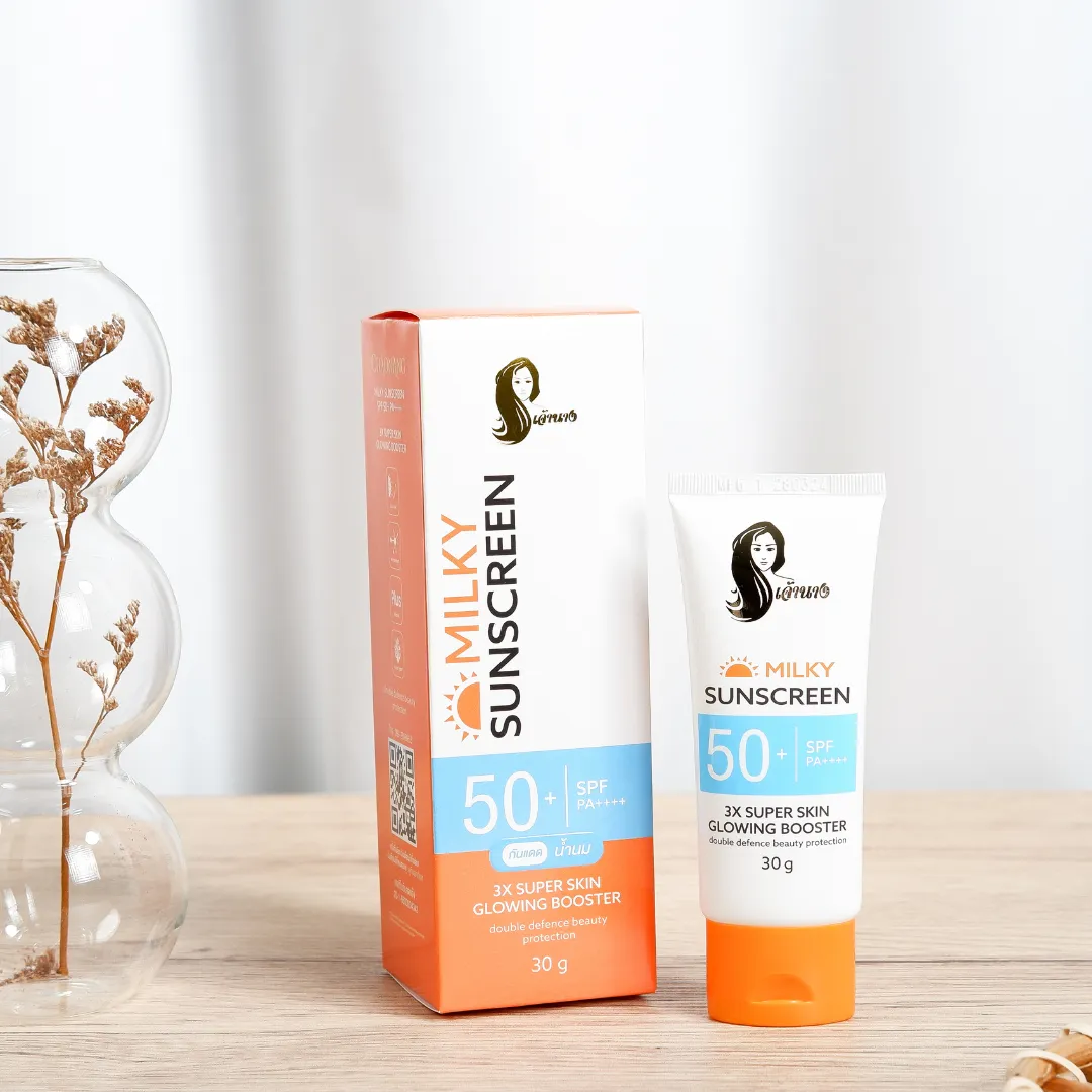 รายละเอียด ผลิตภัณฑ์ป้องกันแสงแดดสำหรับผิวหน้า เนื้อเจลน้ำนม บางเบา เกลี่ยง่าย ไม่เหนอะหนะ มอบสัมผัสที่เนียนนุ่ม ชุ่มชื่น ซึมซาบสู่ผิว อย่างอ่อนโยน ปกป้องผิวจากรังสี UVA และ UVB ด้วย SPF 50+ PA++++ ได้อย่างมีประสิทธิภาพ ด้วยเทคโนโลยี 2X SKINSHIELD ซึ่งผสาน Hybrid Sunscreen 8 ชนิด ที่ทำงานร่วมกันกับ Antioxidant ของวิตามินอี สามารถฟื้นฟูความหมองคล้ำจากแสงแดด พร้อม สารสกัดที่ช่วยมอบความชุ่มชื้น และบำรุงผิวกระจ่างใสด้วย 3X SUPER SKIN GLOWING BOOSTER ที่คืนความชุ่มชื่นให้แก่ผิว ปลอบประโลมผิวที่ถูกทำร้ายจากแสงแดด ลดเลือนจุดด่างดำ พร้อมปรับสีผิวให้กระจ่างใสอย่างเป็นธรรมชาติ ปราศจากสารอันตราย ที่ก่อให้เกิดการระคายเคือง